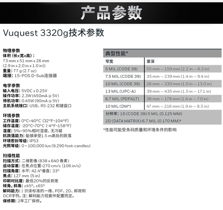 | 扫描精度 | 3mil |